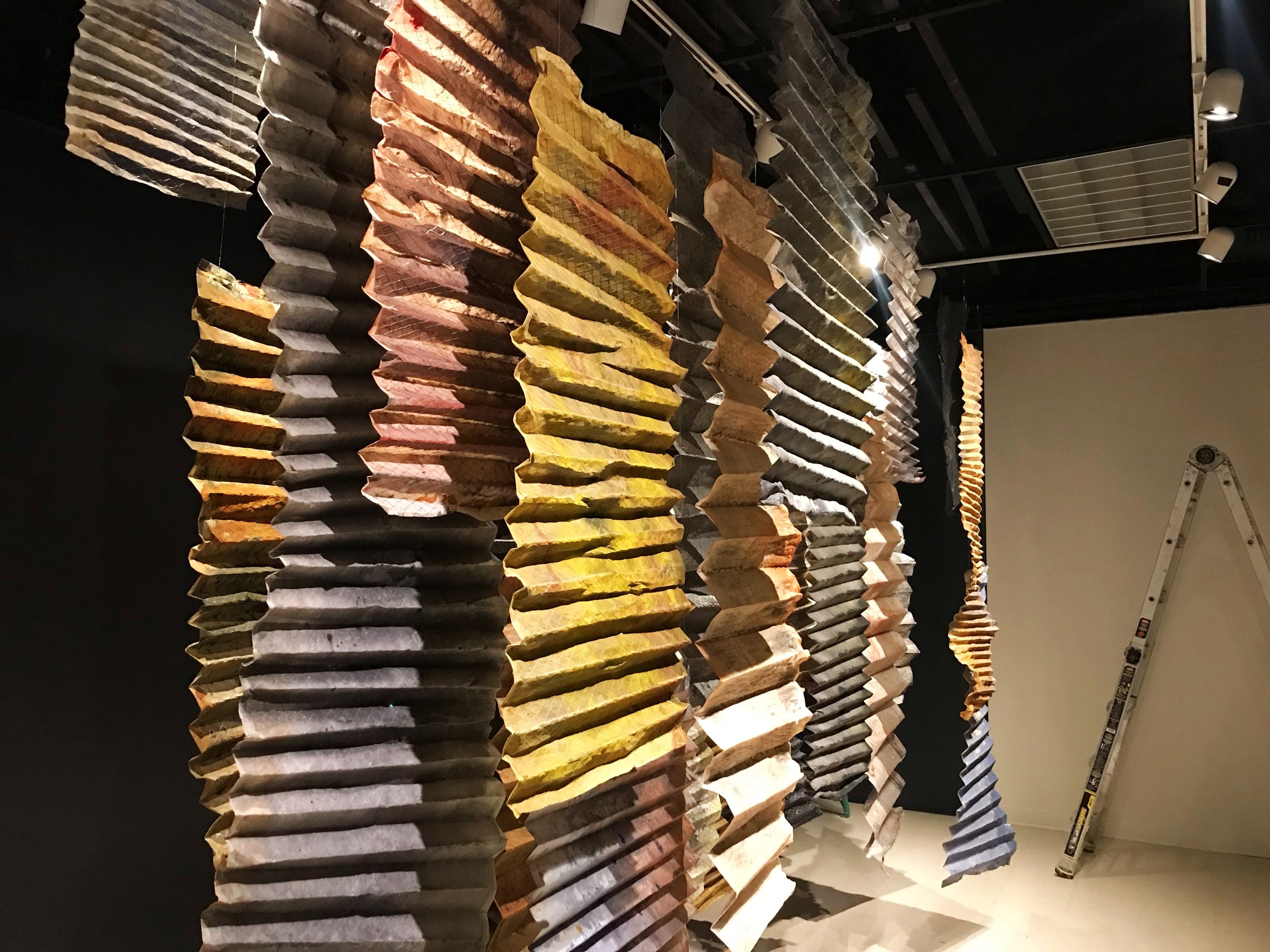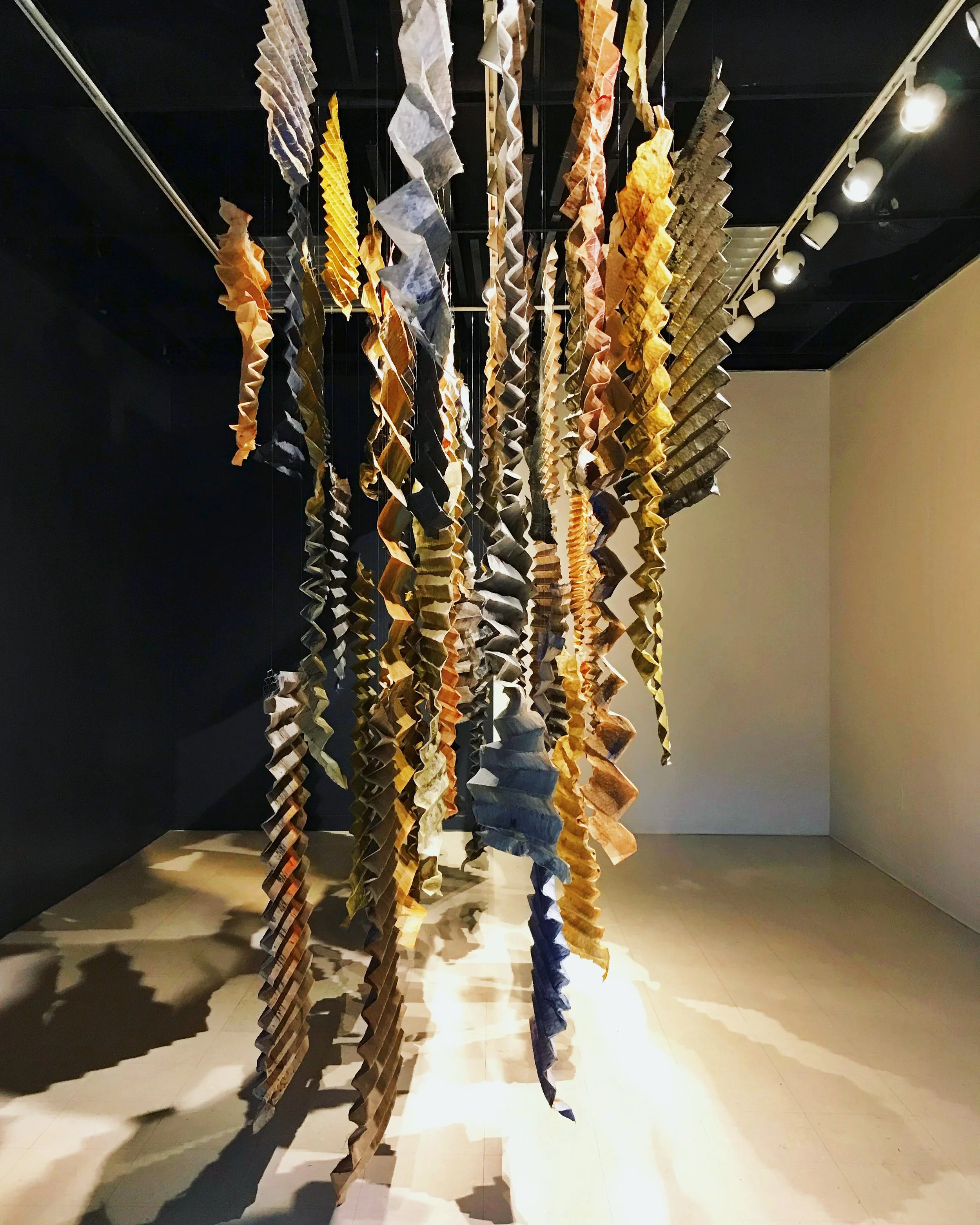 Permeate was an exhibition on view at the California State University, Chico B-So Gallery in December of 2021 created over the course of 4 months. This installation consisted of multiple recycled air filters that were hand dyed and painted.